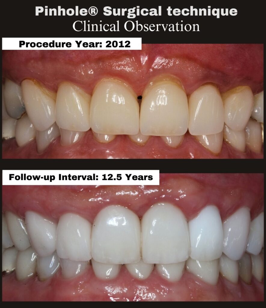The clinical significance of this case lies in the demonstration of long-term stability achieved without incisions or sutures, reinforcing the biologic basis of the Pinhole® Surgical Technique.